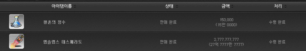 근데 이런 레전 뾰 무기가 31억인데 내꺼가 왜 팔린건지 의문이다.. 흠