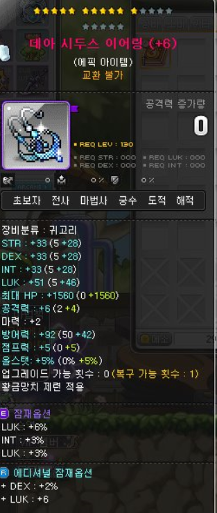 데아시두스 이어링: 추옵 70급, 잠재9퍼