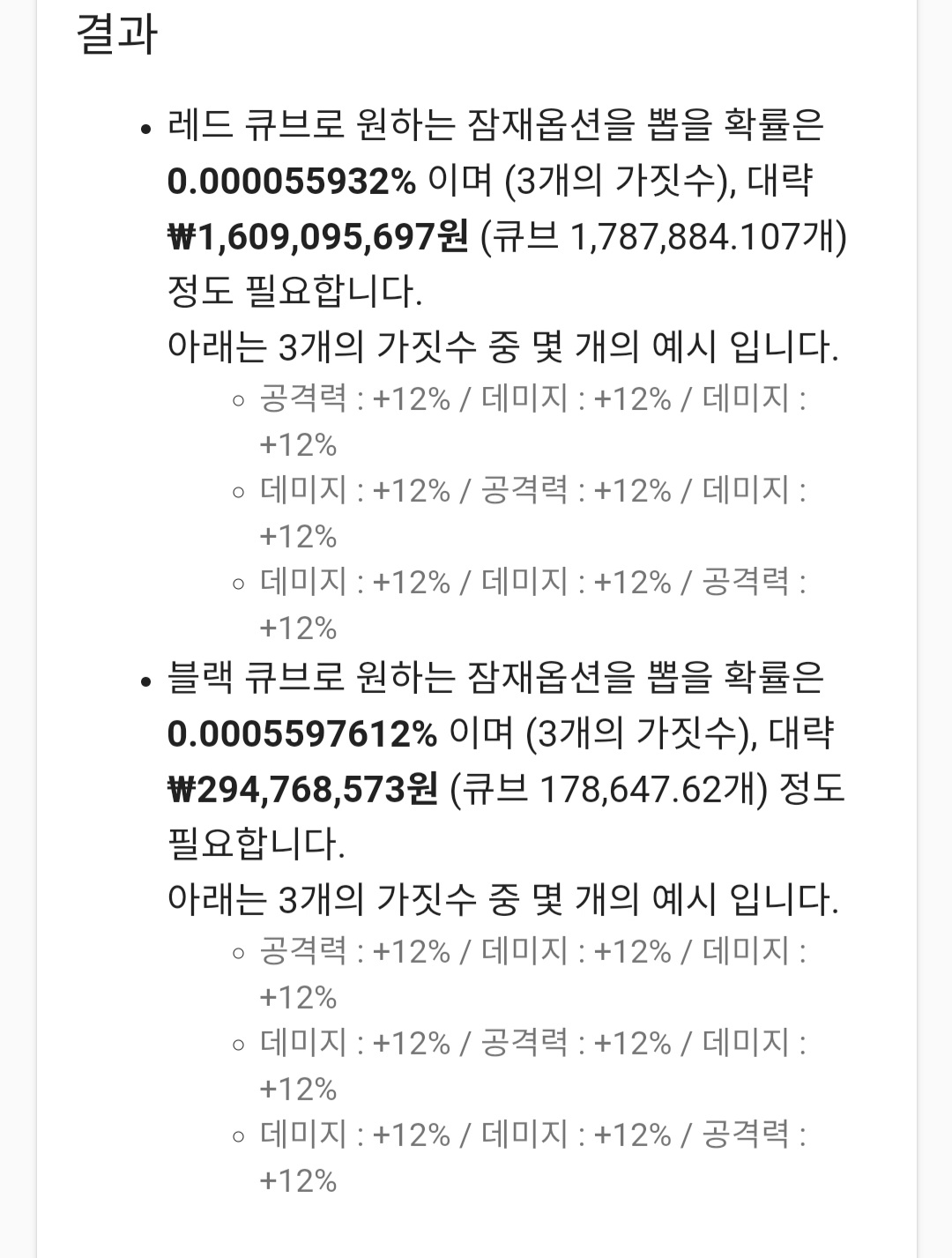 레드큐브, 블랙큐브, 에디셔널 큐브 확률 보러가기