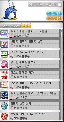 여기까지가 이번 메이플 분홍콩 코인샵에서 구매할 수 있는 치장템 리뷰였습니다.