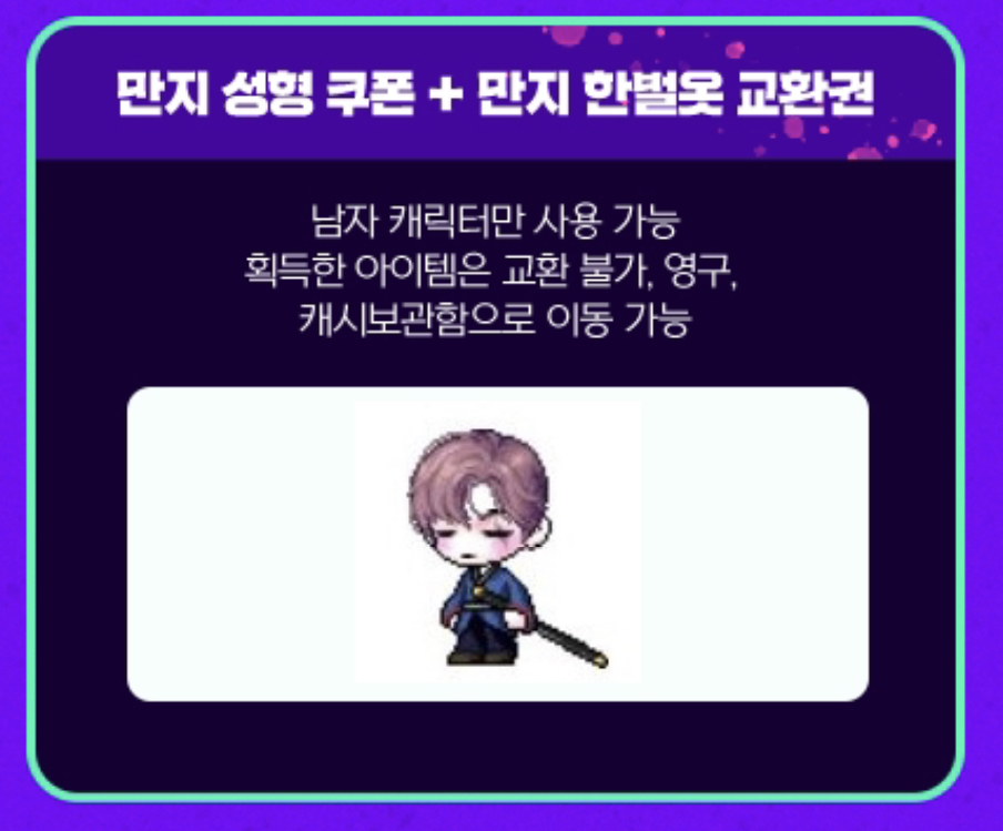 [메이플스토리] 만지 한벌옷 코디 추천 안녕하세요! 저번에 메이플 여름 이벤트 코인샵에 판매중인 <만지 얼굴> 코디를 공유드렸는데요, 오늘은 만지가 입고다니는 <만지 옷> 과 잘 어울리는 코