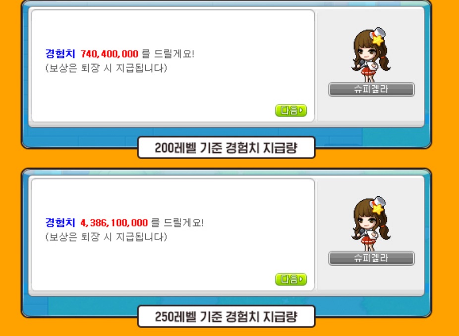 200레벨 이상의 캐릭터에게 경험치랑 코인을 엄청 쏠쏠하게 주고,