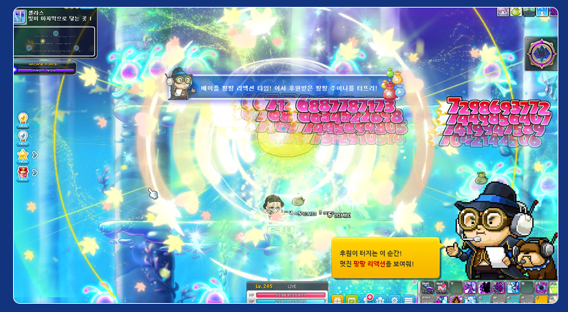 이번 이벤트 중에는 사냥 경험치 수급에 도움되는 <팡팡 리액션> 이라는 컨텐츠가 있습니다. 하루 최대 10번까지 터트릴수 있는 매우 혜자스러운 혜택인데요, 참여 방법과 발동 조건을 알려드릴게요!메이플 별풍선 팡팡 리액션 참여 방법