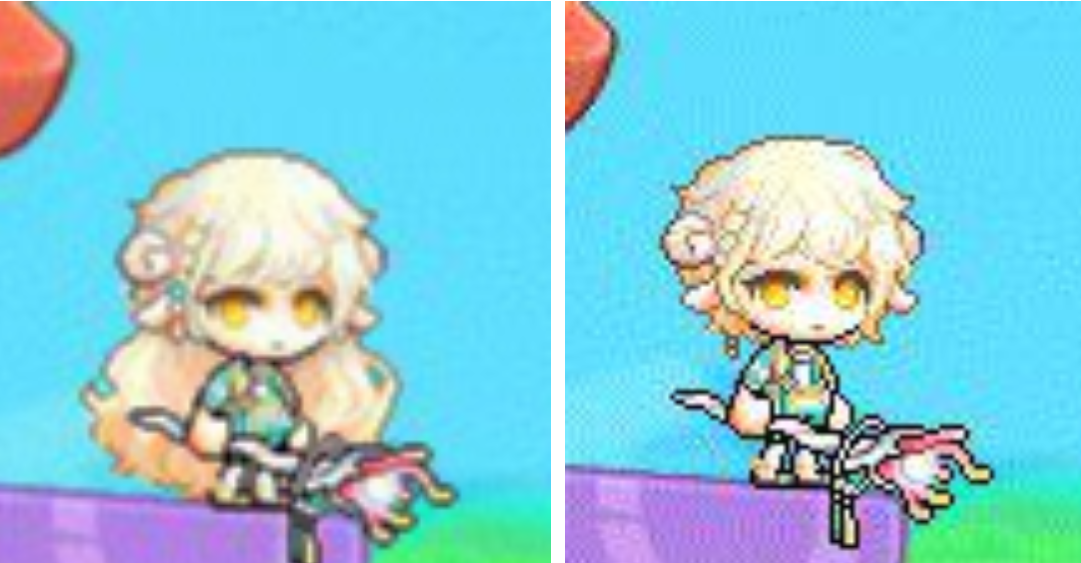 파란색 vs. 검은색 파란색같이 쨍한 색상으로 머리색을 정한 뒤에 헤어쿠폰을 돌리면 자기주장이 너무 강한 색상의 머리가 나옵니다. 그래서 메이플 염색 쿠폰에 돈을 추가로 써야 할수도 있어요.
