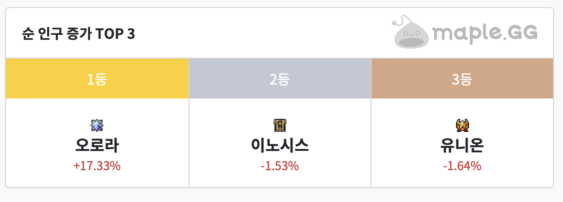 이노시스랑 유니온 등 원래 인구수가 적었던 서버에는 인구가 더욱 줄었습니다.